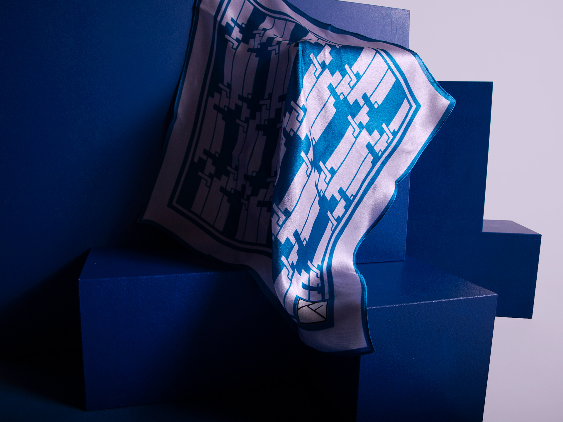 The form of the Vilden have been abstracted to a silhouette and printed on silk fabric.